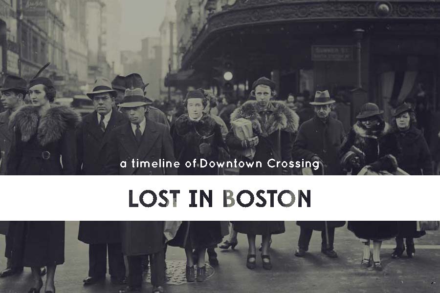 This was a book designed to propose a timeline installation in Boston's Downtown Crossing. The timeline allows the viewer to experience, and value, this lost something, the old marketplace of Downtown Crossing, as well as educate them on the history.
